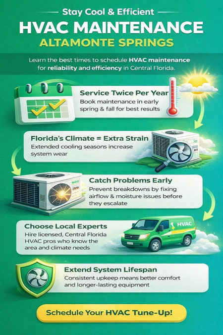 Why it matters locally: Altamonte Springs’ humidity makes HVAC maintenance essential for moisture control, allergen reduction, and healthier indoor environments.